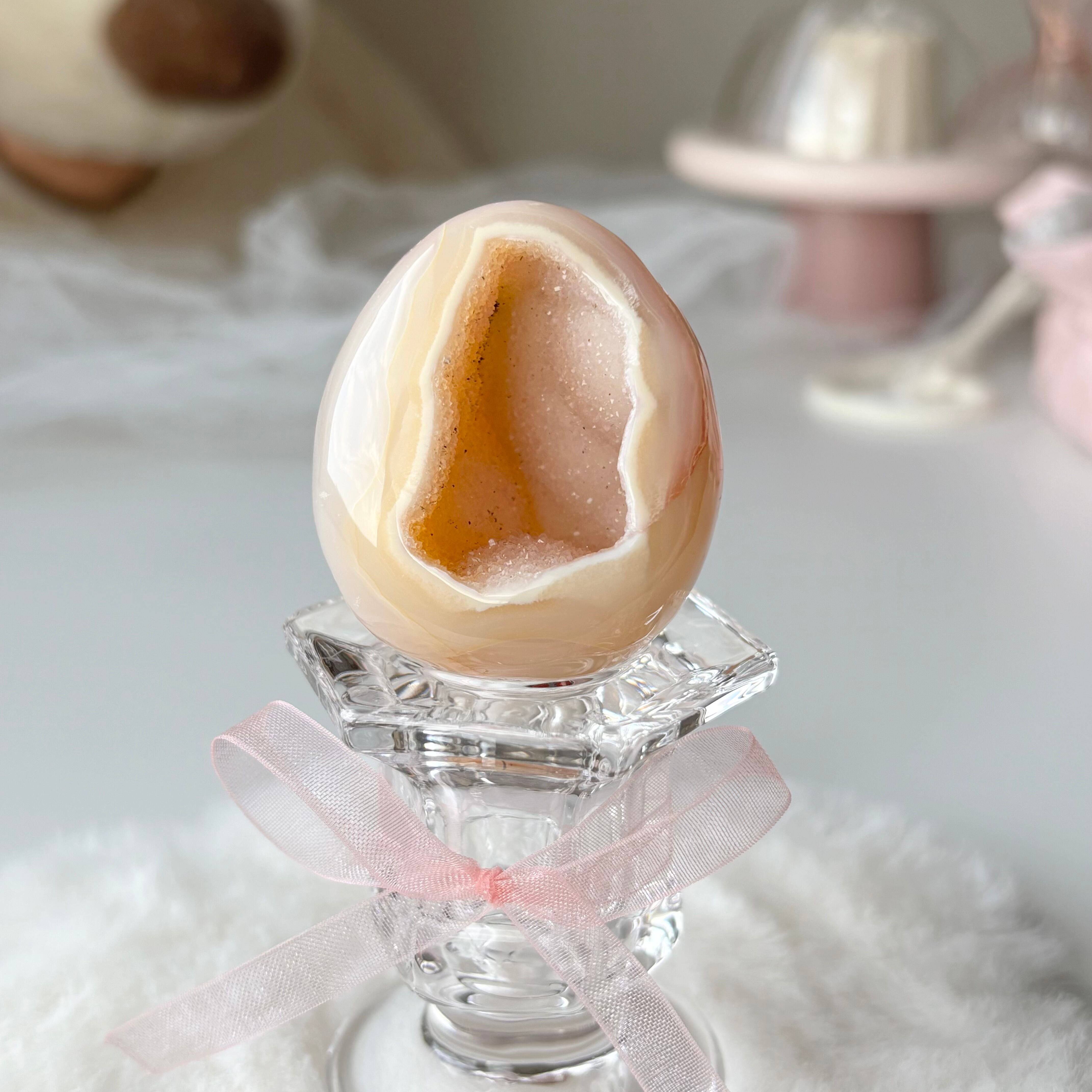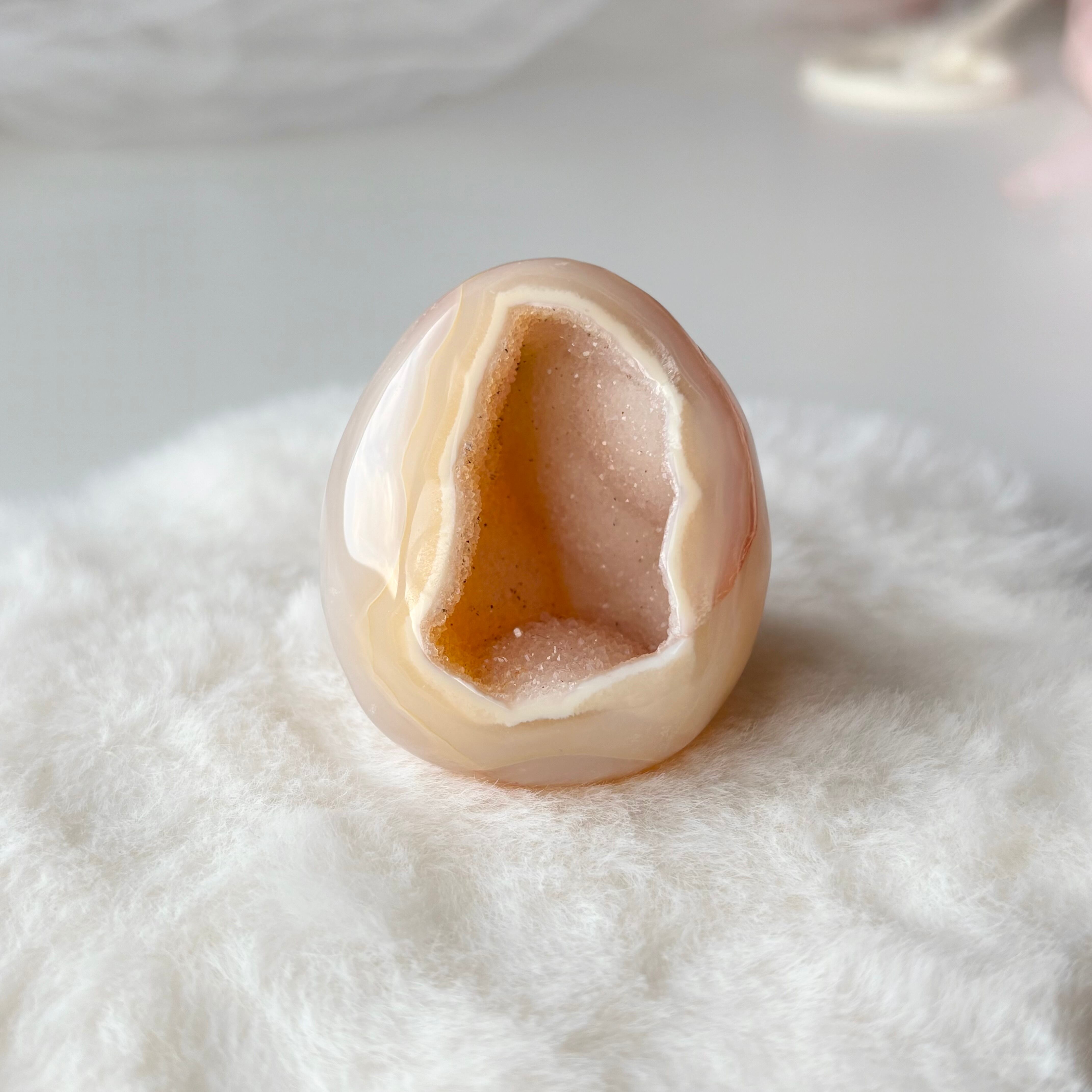 桃っぽいジオードアゲート卵 瑪瑙晶洞 笑口