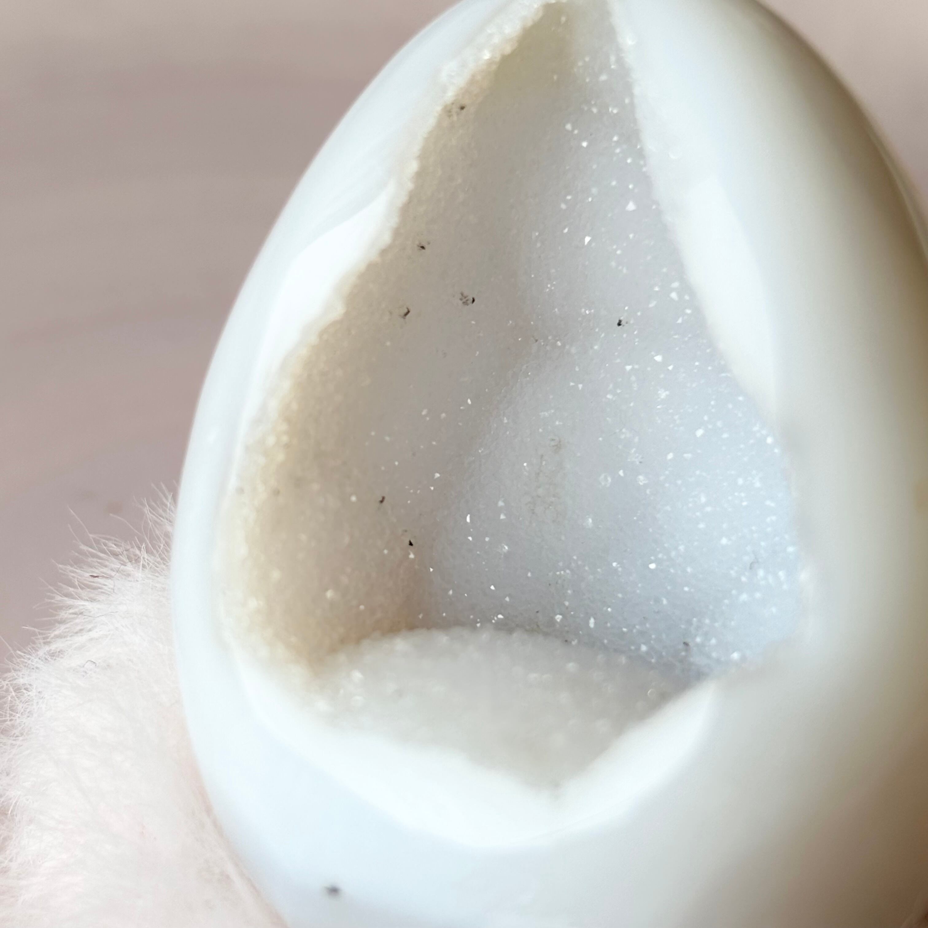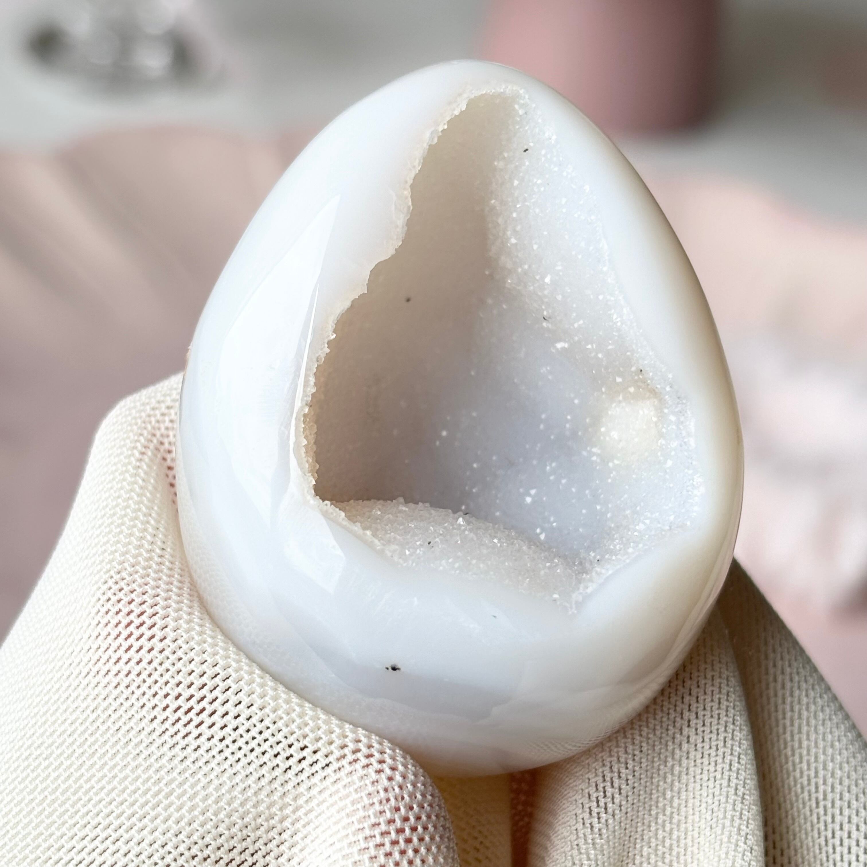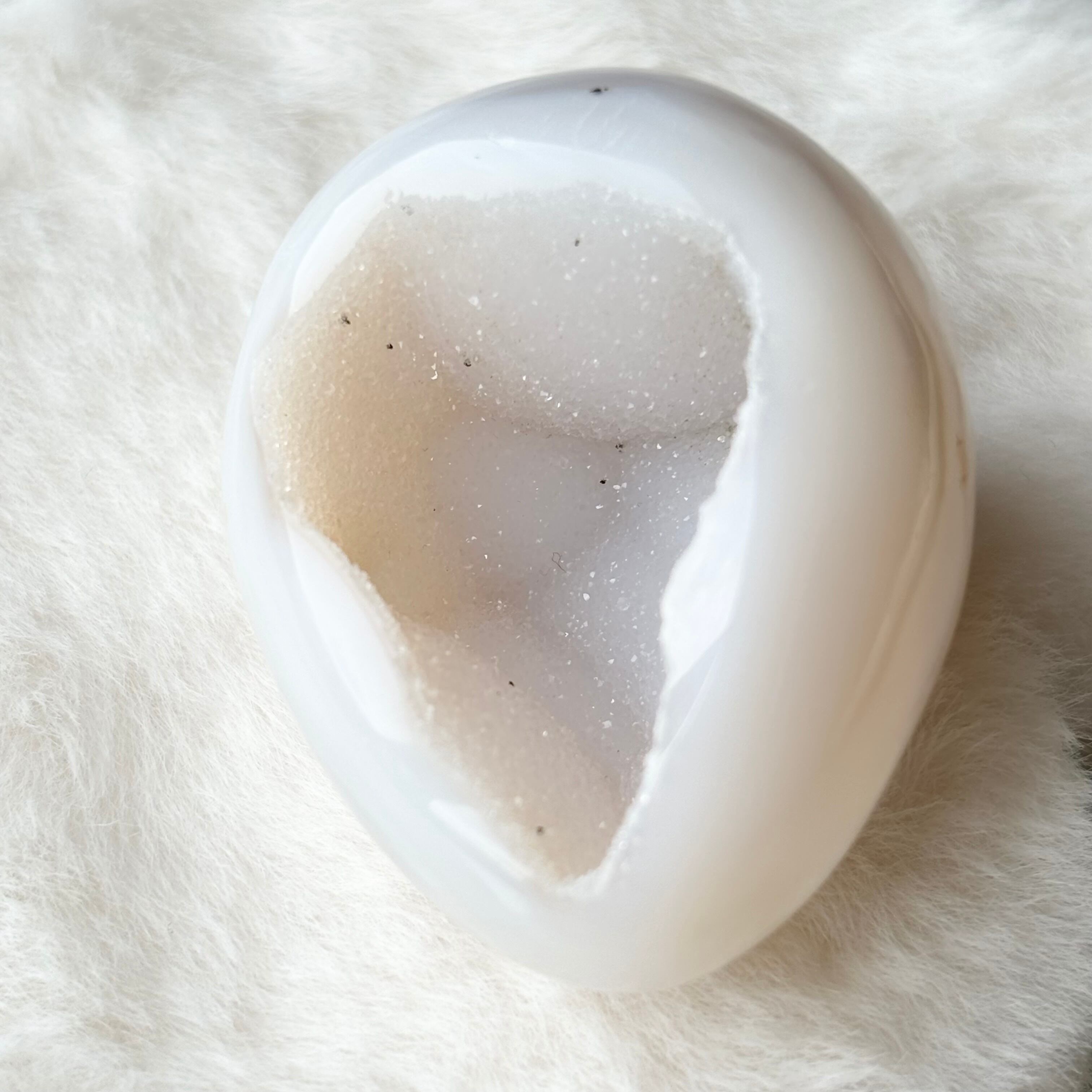 ホワイトシュガーなジオードアゲート 卵 瑪瑙晶洞 笑口 / High Quality