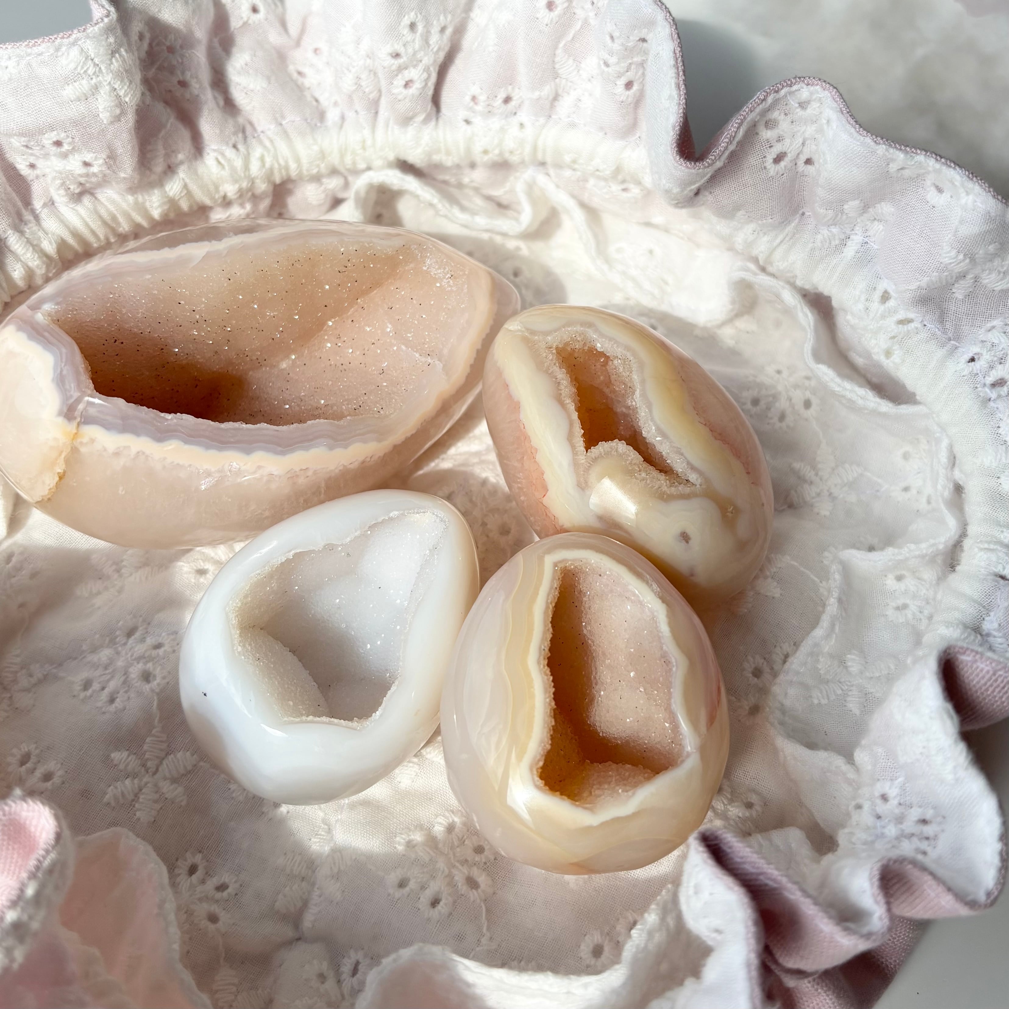 キラキラシュガーなジオードアゲート 卵 瑪瑙晶洞 笑口