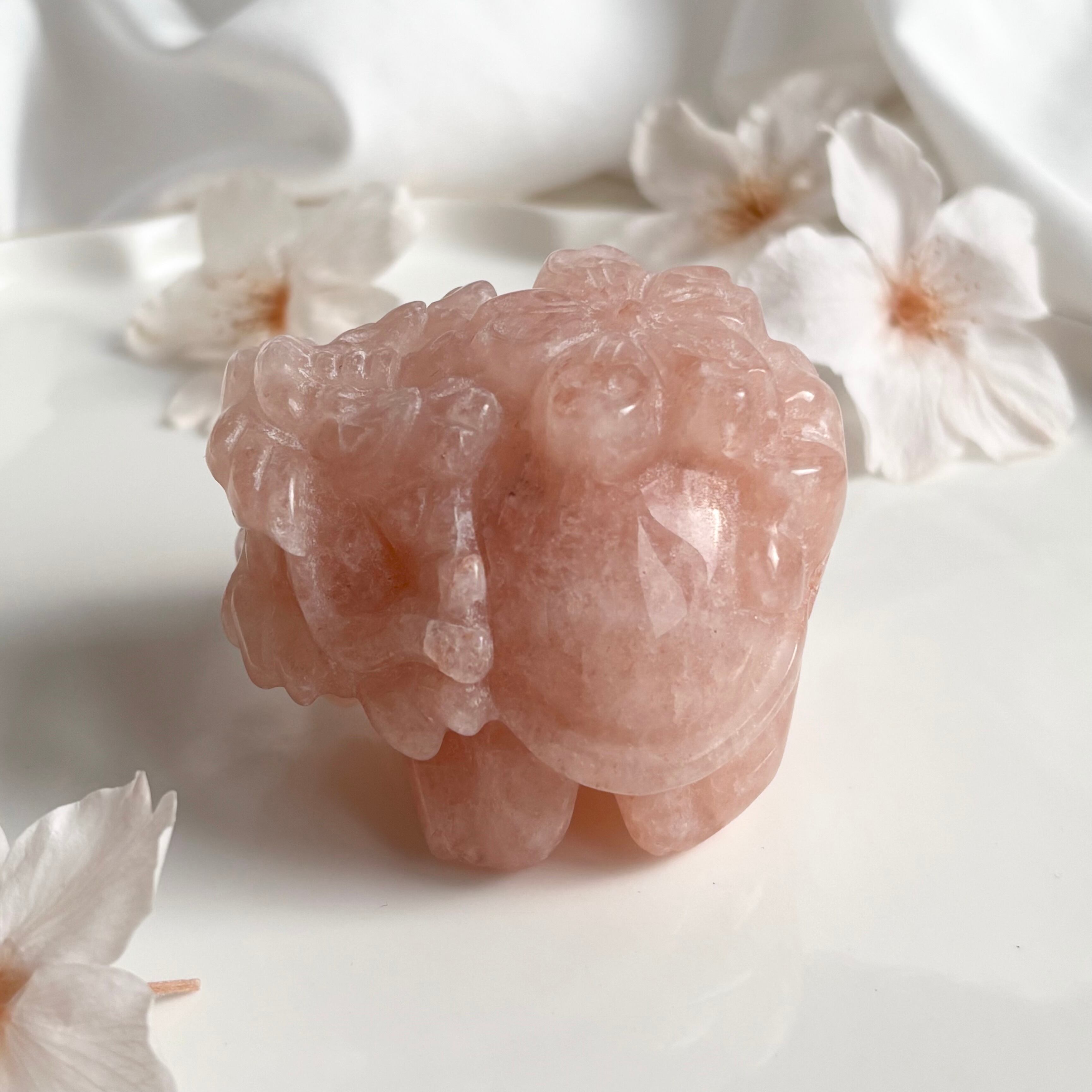 桜乗せロングイさん ピンククォーツ / 龍亀 天然石