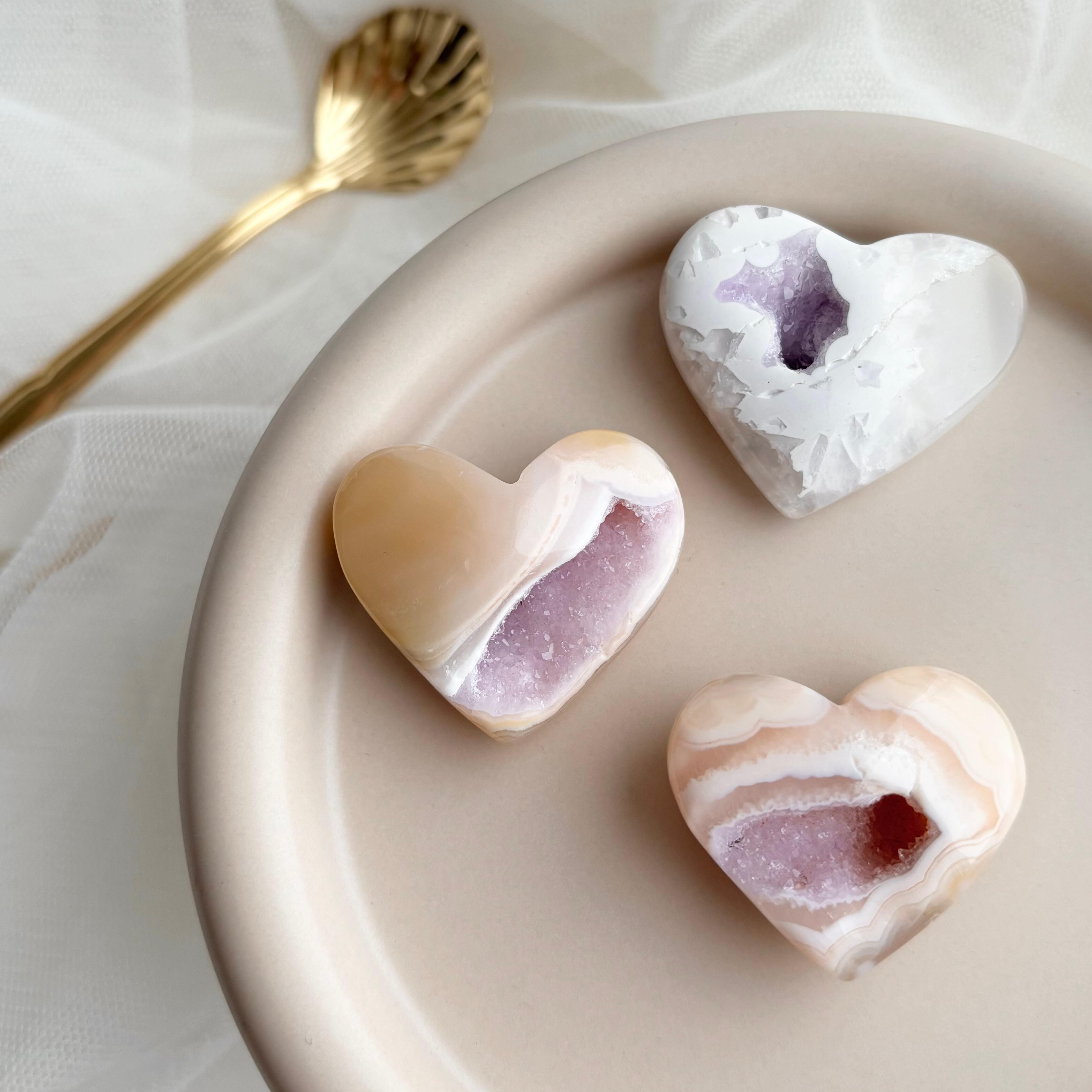 まるでお砂糖菓子な シュガードゥルージーアゲート ハート No.4 /コレクションピース ジオード