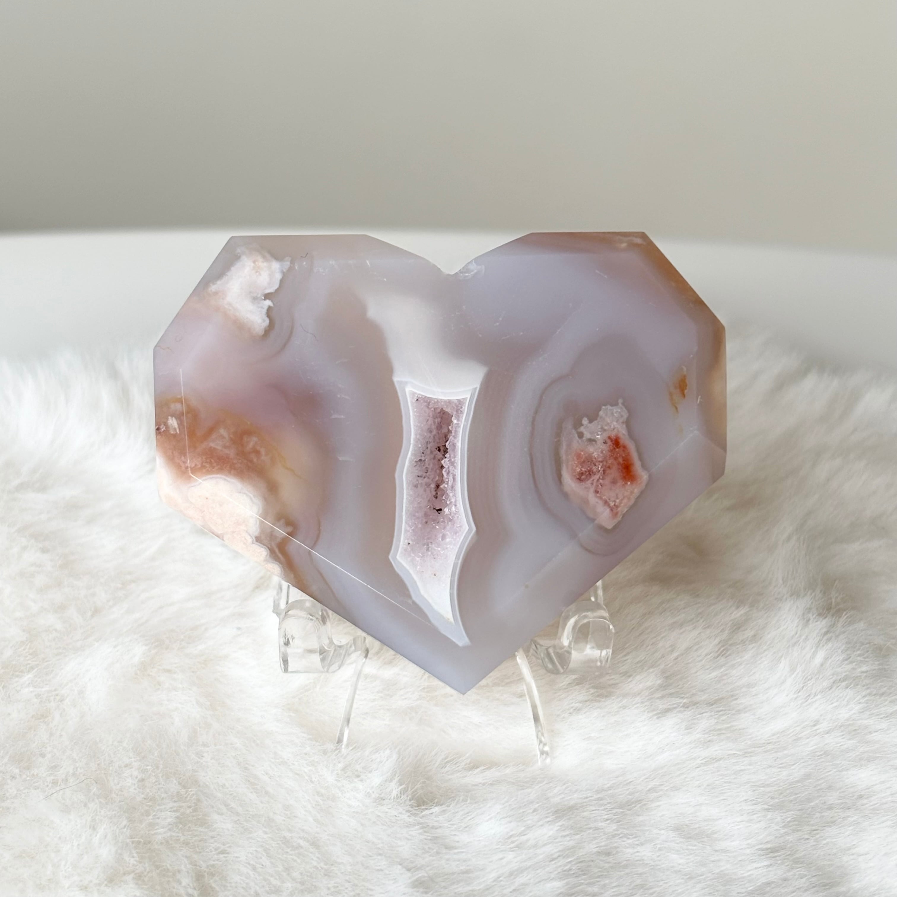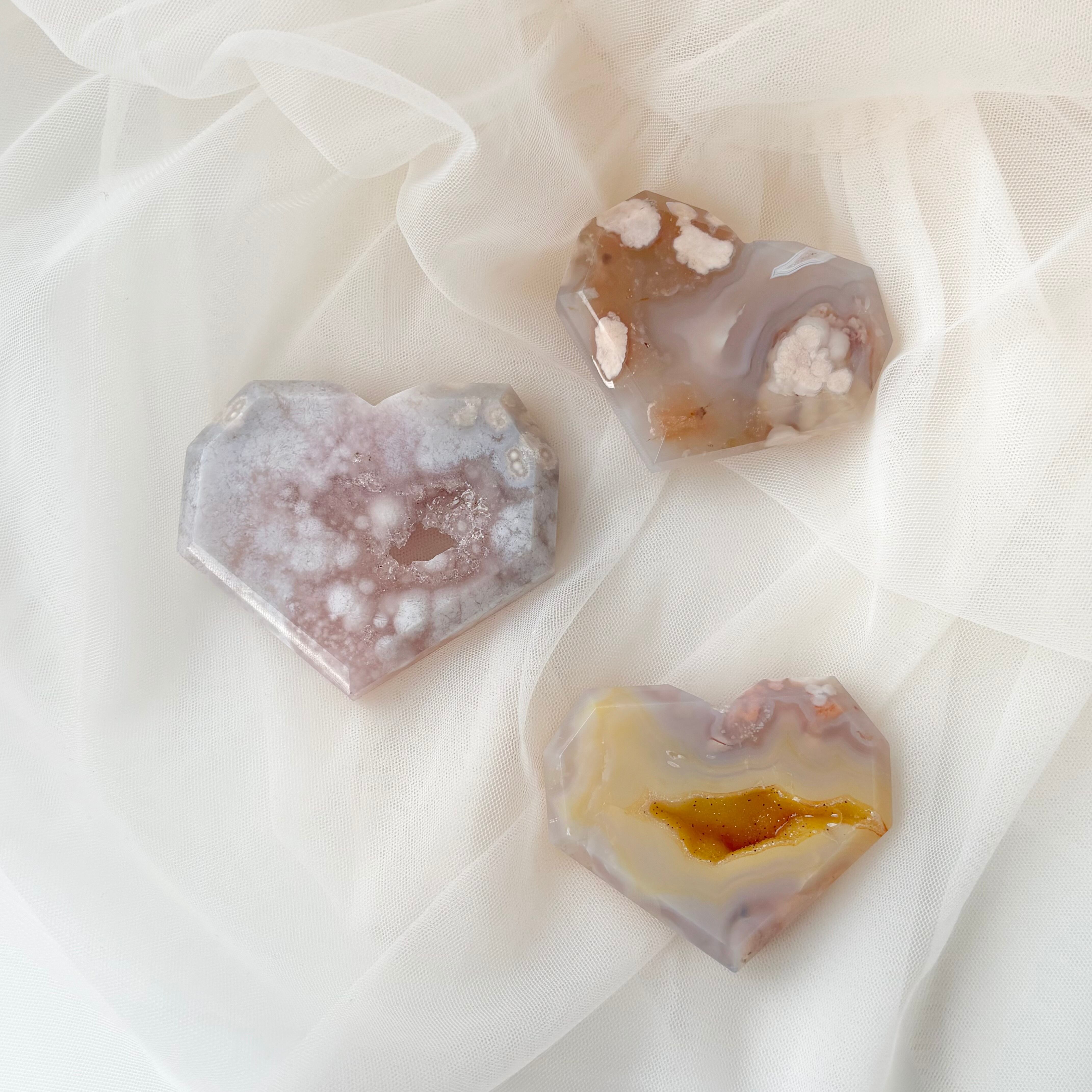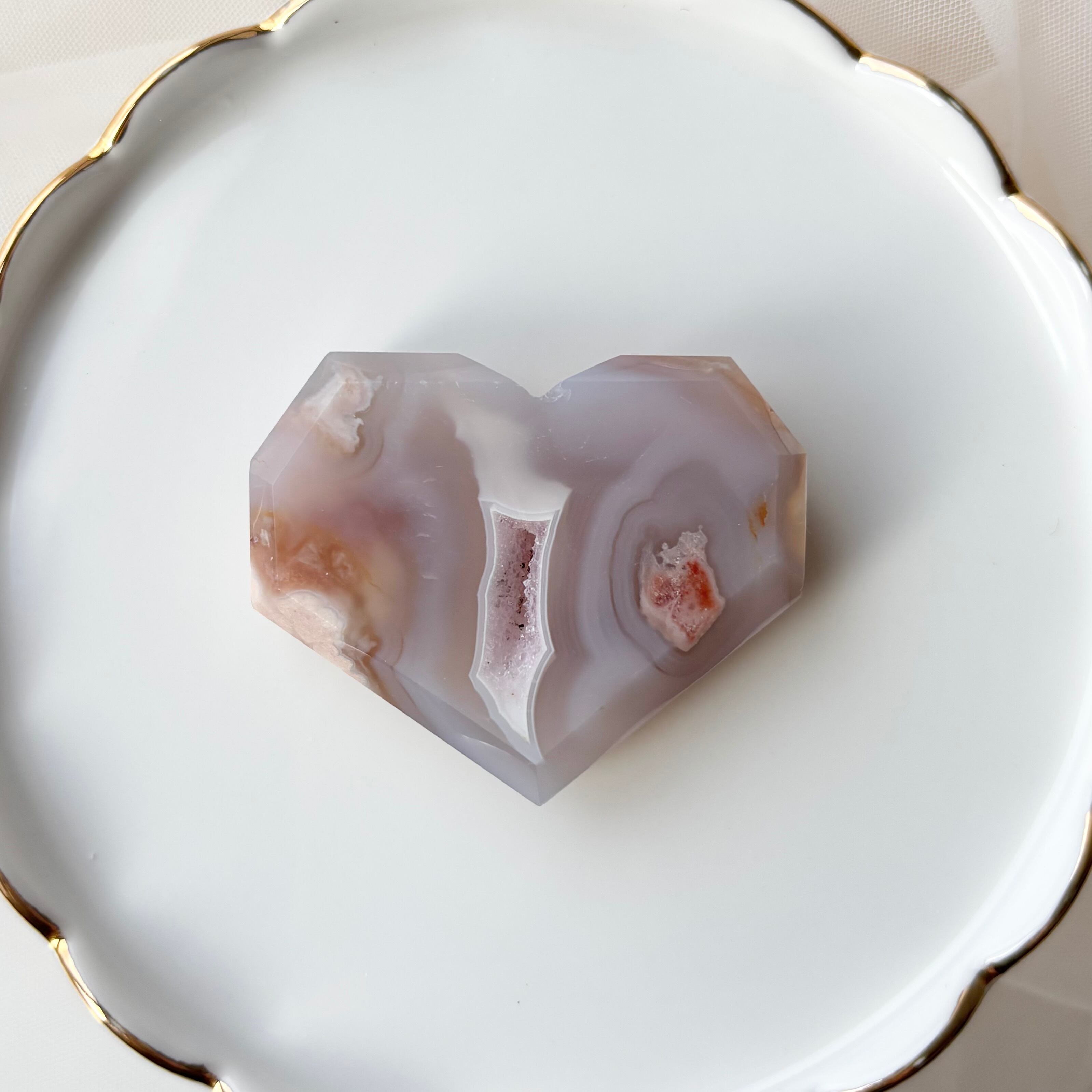 ミルキーグレーの桜瑪瑙 カクカクハート / ジオード ハート 天然石