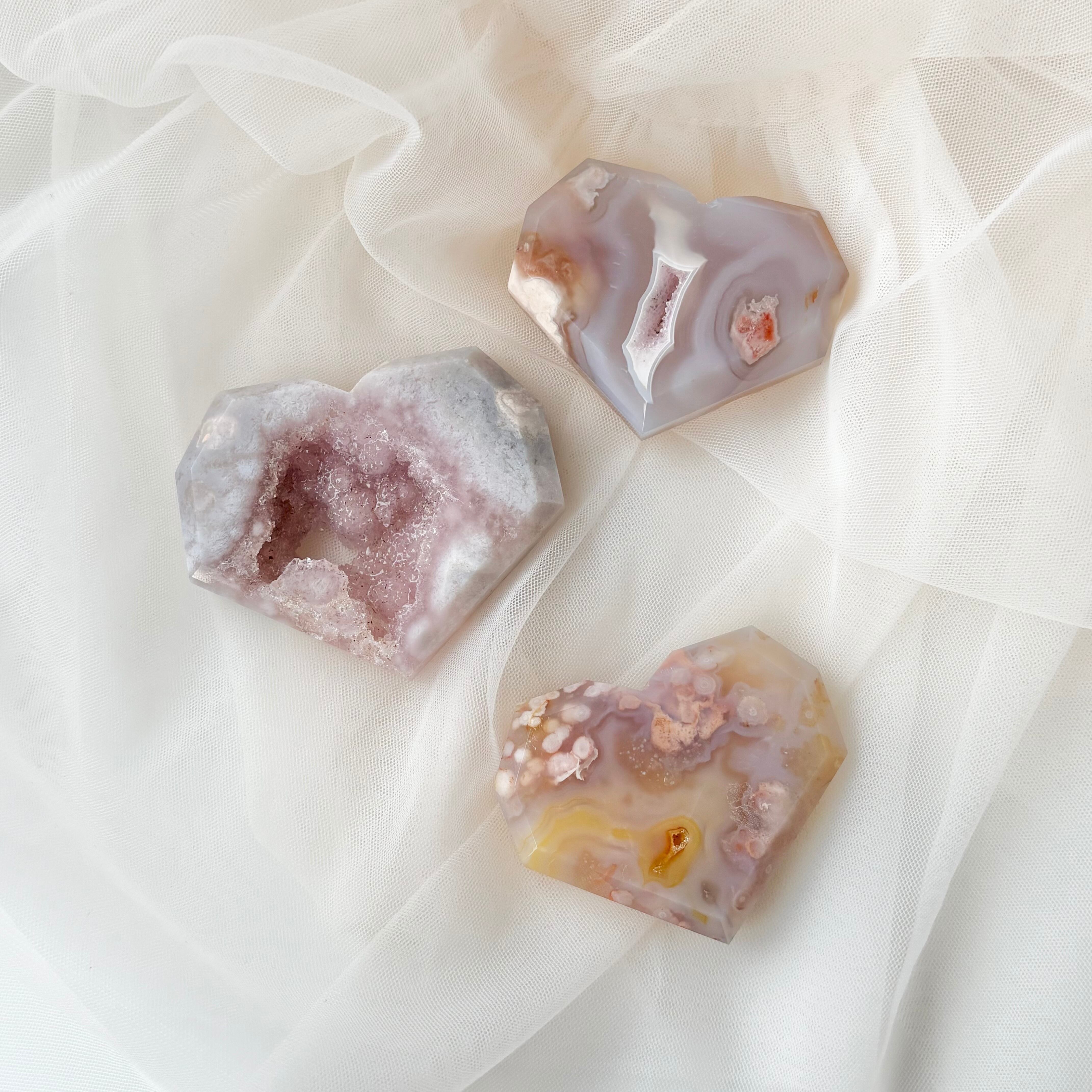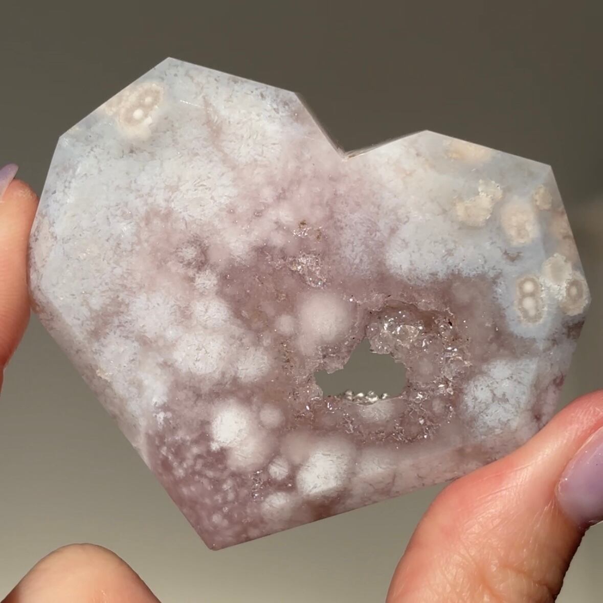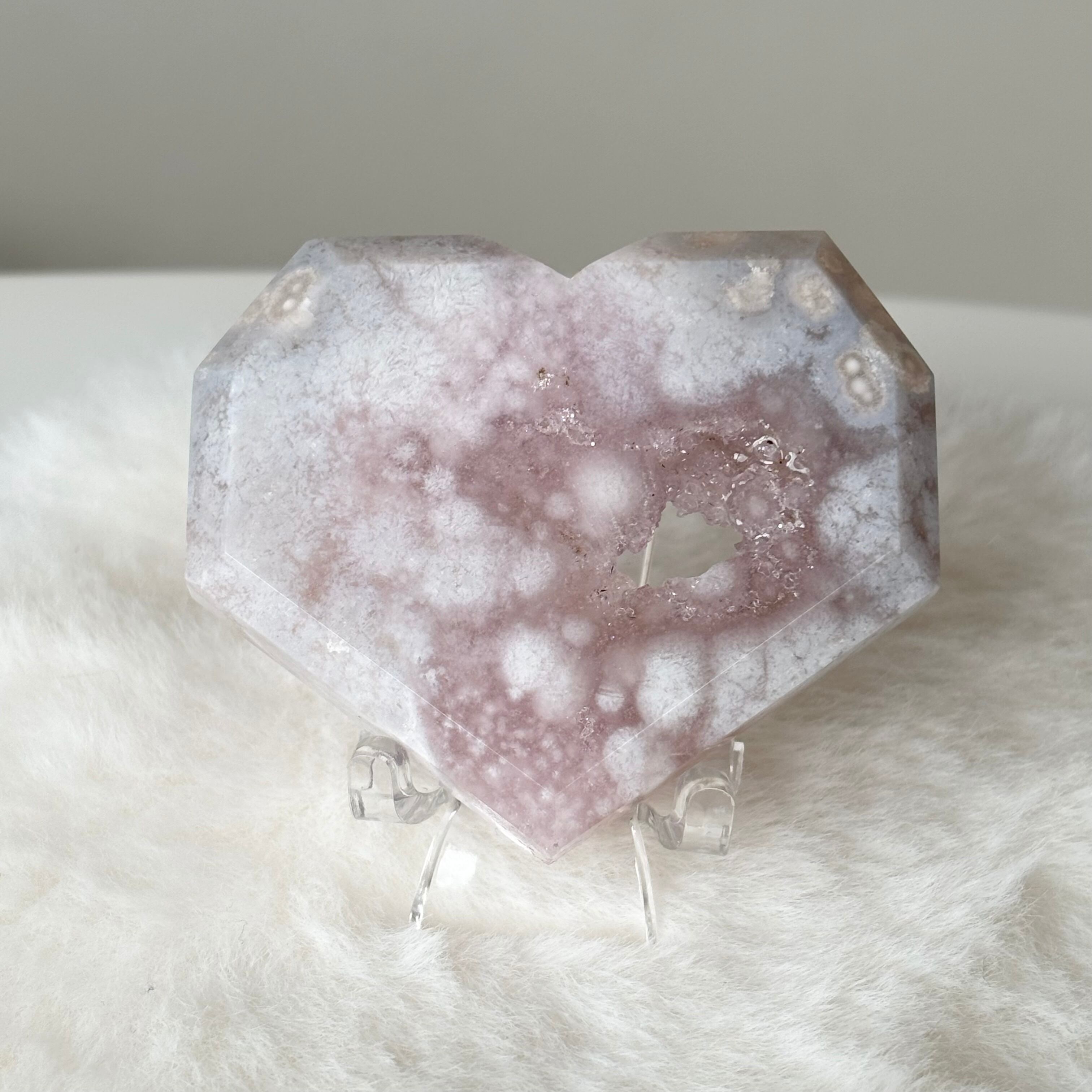 桜満開なピンクアメジスト カクカクハート / ジオード ハート 天然石