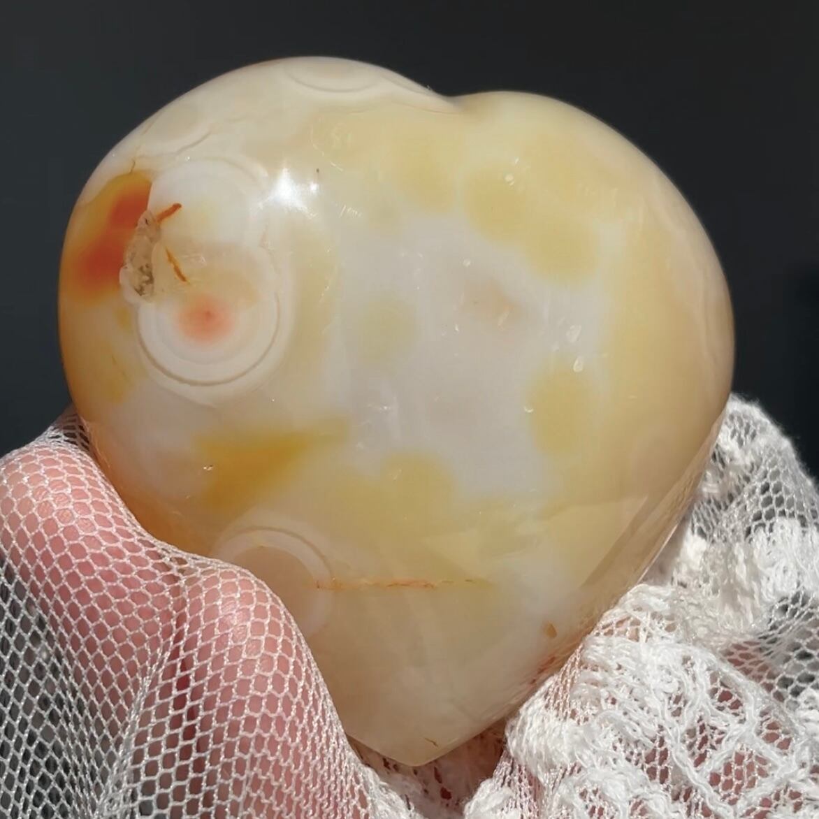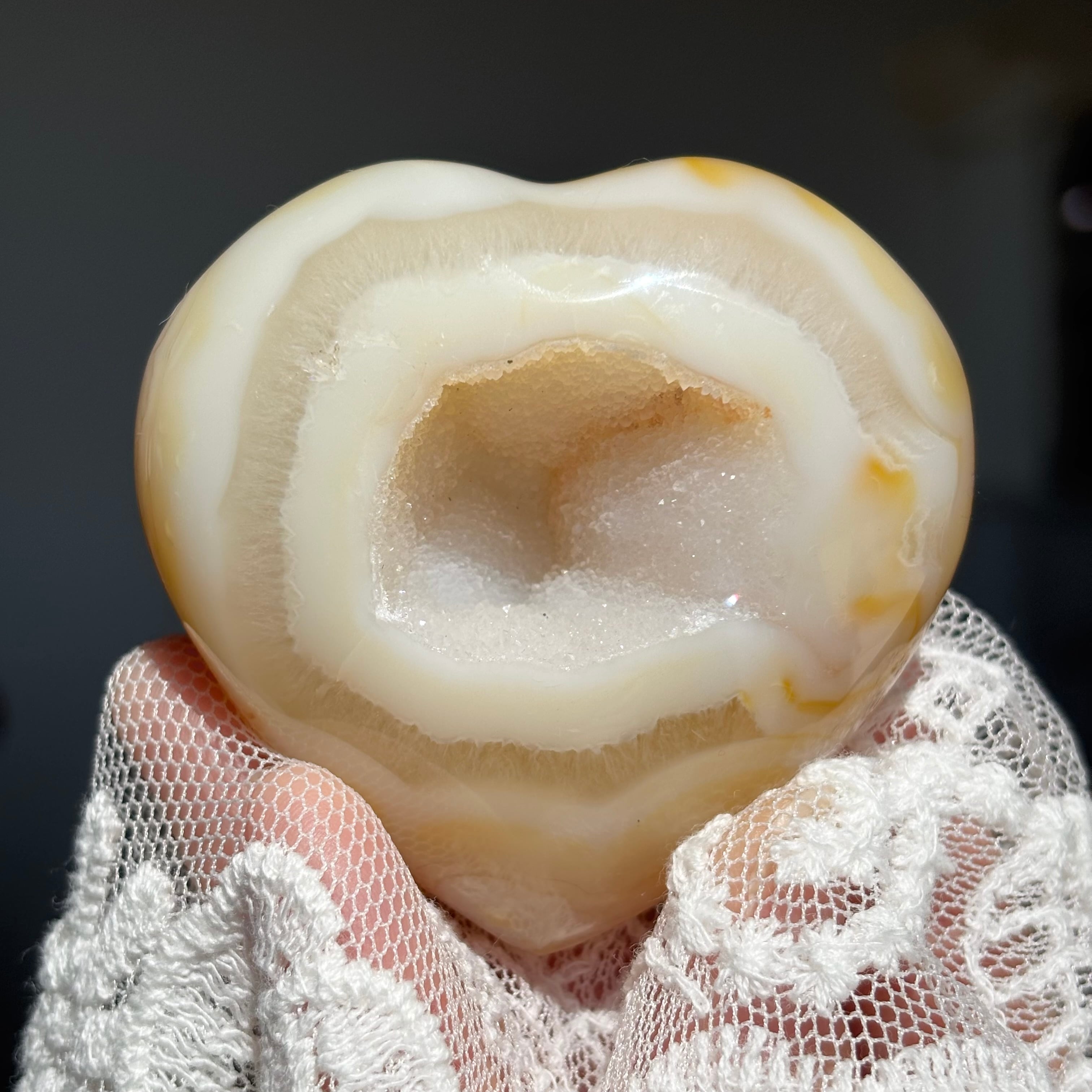 イエローシュガージオードアゲート ハート / 天然石 笑口 ドゥルージー